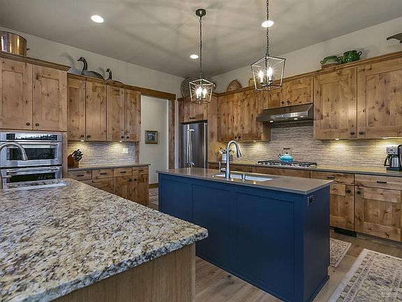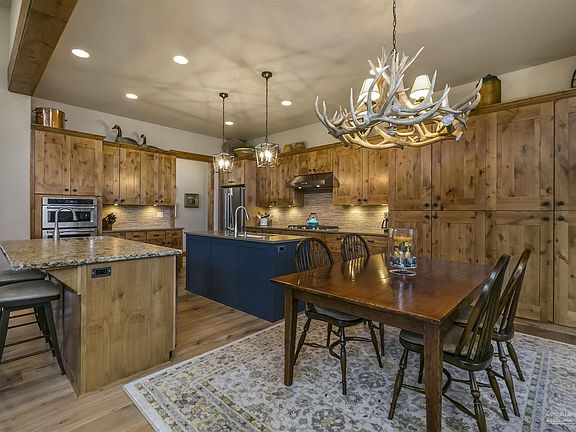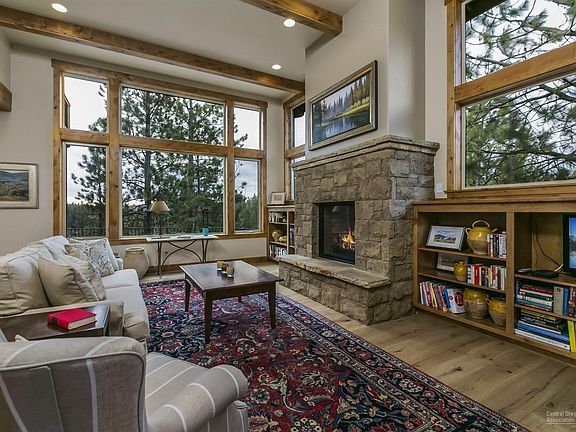 Luxury townhome on west side of Bend overlooking Deschutes River & Mt. Bachelor in PointsWest! Easy access to Cascade Mountains, Deschutes River, golf, trails. Vaulted Great Room with gas fireplace. Gourmet kitchen with two islands, stainless steel appliances, custom cabinetry. Hardwood floors throughout main living area. Master bedroom on main level. Three guest suites, bonus room, beverage bar, deck with stunning views upstairs. Covered back patio, 2 gas fire pits, hot tub. Large utility room & built-ins.