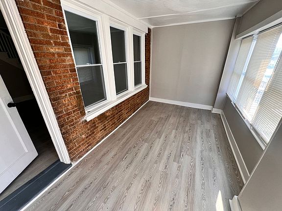 offers comfortable and low-maintenance living across its three bedrooms, one full bathroom, and one half bathroom. The interiors feature a modern aesthetic with fresh paint, updated light fixtures, and durable new flooring throughout. The main level showcases a stylish, light-toned **wood-look vinyl plank flooring** that is both inviting and practical, leading into the newly appointed kitchen. This functional space boasts white shaker cabinets, a crisp white subway tile backsplash, light countertops, and new stainless steel appliances, including a microwave over the range and a refrigerator. The property also includes a bright sunroom with attractive vinyl flooring and an exposed interior brick wall, providing a cozy extra area for relaxation or an office.