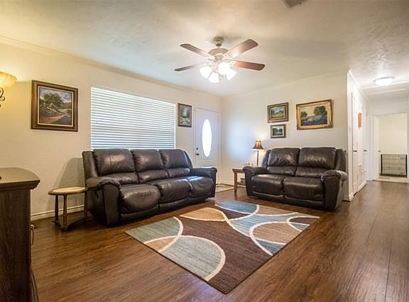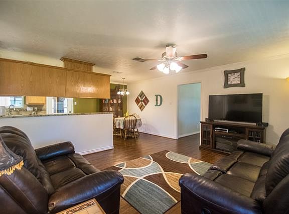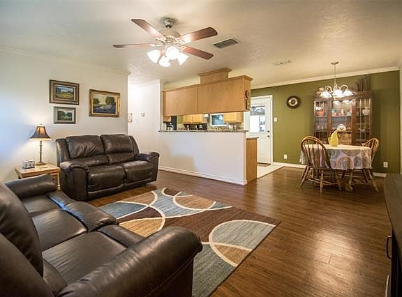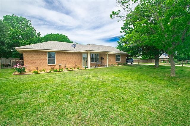 Darling Ranch home, 3-2 + 2nd LR + Screened Patio + Cantina + Workshop with Electricity, ALL on Half Acre lot in the Desirable Krum ISD! This Property boasts an Open & Split floor plan, plenty of natural light, Crown molding, recently updated laminate wood floors, tile & paint. A Galley Kitchen with Granite, Tile Backsplash, Under Cabinet Lighting, All Electric Appliances & a Walk in Pantry! Optional 2nd utility closet, New fencing, 2-Car Carport, Raised Garden beds, Fresh sod, Fire pit, Covered & Screen in Patio, Luscious Trees in Front & Back! This Property is a MUST see & WON'T last! Schedule your showing Today!
