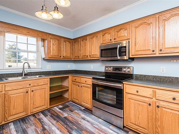 This 3 bedroom, 2 bath home is situated on a full acre lot with a nice front porch and plenty of space for gardening. The open kitchen/dining room has custom cabinets and a built-in pantry. The refrigerator, microwave & range convey. LVP floors and a fireplace with gas logs are in the main living areas. Spacious master bedroom with a private bath & WIC. Double car garage, storage shed and nice outdoor living.