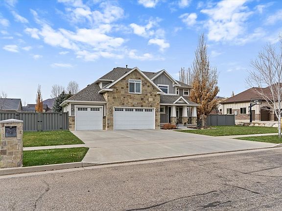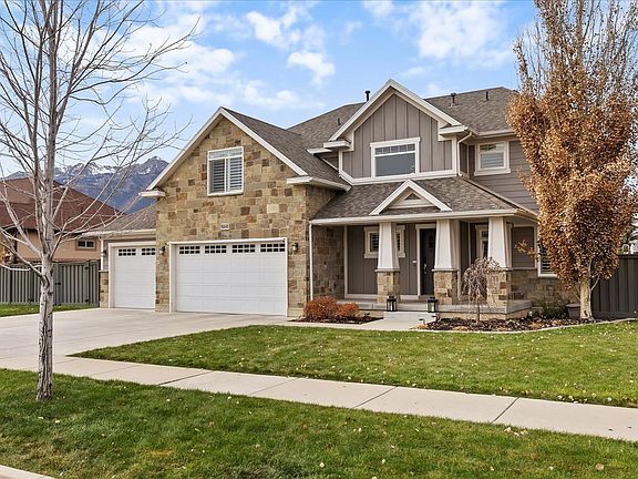Private fenced yardHot tubCovered patioCustom media wallMountain viewsOversized three-car garageLarge island