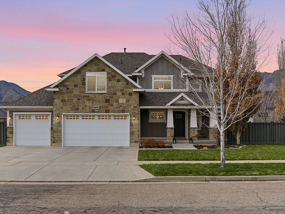 Welcome to this beautifully maintained home in the highly sought-after Rollins Ranch neighborhood. Thoughtfully designed with bright, open living spaces, this property offers comfortable everyday living with upgrades throughout. The stunning kitchen features quartz counters, a large island, stainless appliances, and custom cabinetry, while the great room showcases built-ins and a modern fireplace. The fully finished basement adds an impressive retreat with a custom media wall and plenty of space for fitness or entertainment. Step outside to a covered patio overlooking a private, fenced yard-complete with a hot tub and mountain views. An oversized three-car garage with exceptional storage and gear space rounds out the property. Move-in ready and perfectly located, this is a Mountain Green home you won't want to miss.