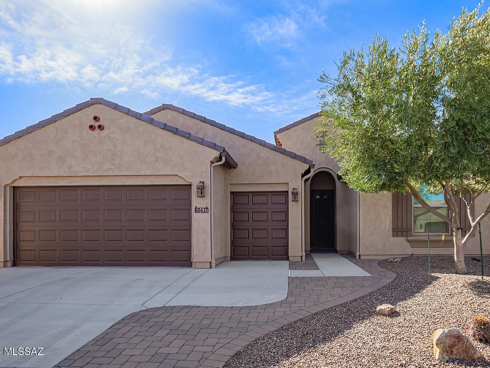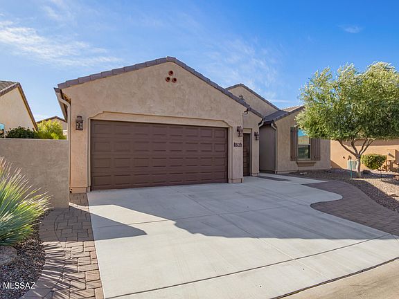 Welcome to easy living in SaddleBrooke Ranch! This beautifully maintained 2-bedroom, 2-bath single-family home with a golf cart garage offers the perfect blend of comfort, style, and low maintenance living in one of Arizona's most desirable 55+ resort communities. Step inside to a bright, open floor plan filled with natural light. The spacious great room flows into a cheerful kitchen with generous counter space, ample cabinetry, and a convenient granite island -- ideal for casual entertaining or your morning coffee. Both bedrooms are thoughtfully separated for privacy, and the primary suite features a walk-in closet and private bath with dual sinks and step-in shower. A spacious laundry room and a built-in valet with full cabinetry provide practical storage and organizational convenience. Enjoy Arizona's beautiful weather year-round on your extended paver patio with low-maintenance turf and desert plantings perfect for BBQs and relaxation. The golf cart garage provides easy storage for your cart or extra space for tools, bikes, or hobbies. Meticulously cared for front yard landscaping give this home instant curb appeal. Move-in ready, this home lets you start enjoying all the amazing amenities SaddleBrooke Ranch offers golf, pickleball, pools, restaurants, fitness center, creative arts center, and endless social clubs.