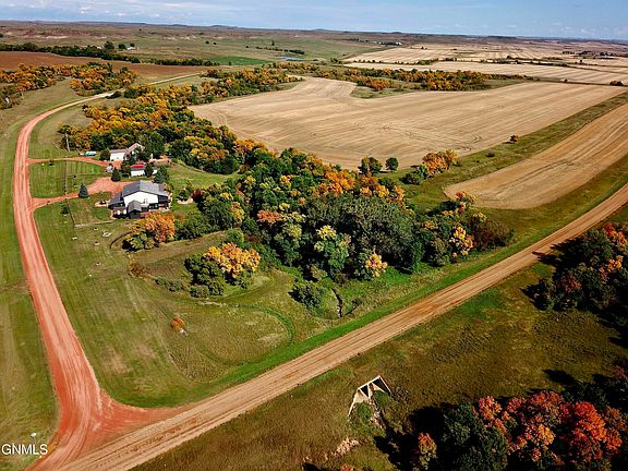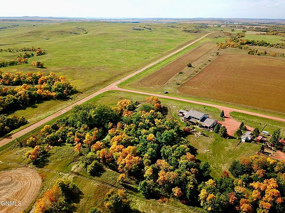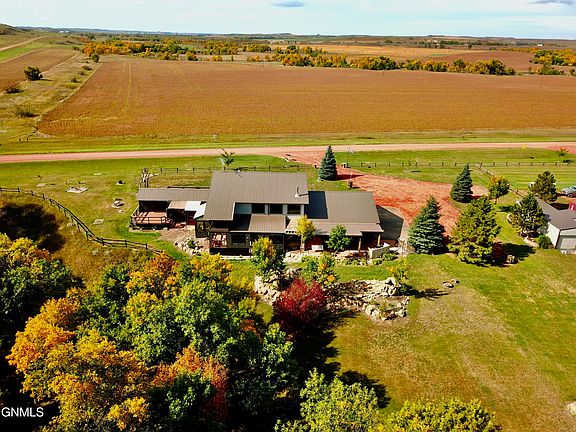 Custom built home with endless features! Slab on grade with in-floor radiant heat throughout home and garage. Open and spacious floor plan. 5 bedroom, 4 bath, 3,500+/- square feet. Large patio on the back of the home overlooking a beautiful rock fountain. Peaceful setting with wildlife and great views on 3.54+/- acres minutes from town and a quick, easy drive to Bismarck/Mandan.