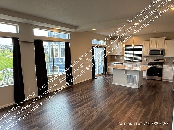 Just built in 2022, this beautiful 3 bedroom home nestled in a corner lot in the popular Banning Lewis Ranch area is a gem. Bright, open main level with luxury vinyl plank flooring, vaulted ceilings, custom shelving and open from the spacious living room to the gourmet kitchen with large center island, oversized walk-in pantry and stainless appliances including a gas range. Enjoy your morning coffee on the walk-out balcony. The main level primary suite includes a walk-in closet and private bath. Upstairs includes two spacious bedrooms and a full bath. A generous family room/rec room area is located downstairs in the finished basement and walk-out to your private, fenced backyard. Ashmore Park is within walking distance as well as two clubhouses, pools, tennis, pickleball and a dog park. Charter schools and a public elementary school are all right there. Also close to lots of shopping, dining and entertainment!