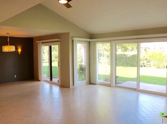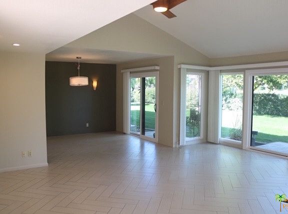 Condo located on the Tahquitz Creek Golf course, in the Sandcastles community. Unit faces south across from the associations only heated pool. As you walk up to the front gate you enter into the private courtyard that leads to the double door entrance. The courtyard has direct access to the two car garage. This unit has had many updates starting in 2015 with an updated furnace and hot water tank. The kitchen was just remodeled in 2016 with new circuits, self closing drawers, a wine cooler, a new range/oven, a new microwave, and decorative lighting above the cabinets. Also completed in 2016 were the dual pane windows and sliding doors, double insulated shared wall, porcelain floor, and ceiling fans. New central A/C unit installed summer 2018. Washer and dryer located inside the unit. Condo is just minutes from multiple shopping centers and restaurants.