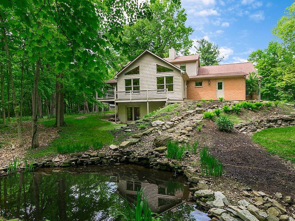 Phenomenal setting for this luxurious home on 9 acres in the woods! Bordering over 40 acres of preserve land and walking trails, this is a rare find. Winding down the long driveway, Step into the modern cabin-like home that has all the custom touches you could ask for. Gorgeous open kitchen with island flows into the great room for some of the most spectacular views out every window. Watch the resident deer stroll by as you enjoy the waterfall feature off of the back patio that overlooks the creek and ravines. Huge screened in porch for those summer nights. Steam shower in the 1st floor master is something out of a magazine. Fully finished lower level with walkout. Shop has HVAC, epoxy floor and compressed air. Theres even a 2nd party house for larger gatherings or income potential.