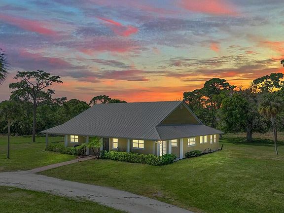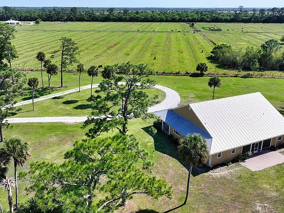A true private retreat on 16.66 acres! This 4BR/4BA, 3,353-SF estate offers an open, light-filled floor plan with spacious living areas and gorgeous views of the property. Enjoy a stocked pond, multiple outbuildings for storage, equipment or hobbies, and plenty of room for horses or livestock. Peaceful wide-open spaces, mature trees, and exceptional privacy make this the perfect blend of country living and modern comfort - yet still conveniently close to town. 21st St SW between 43rd and 58th avenues will be paved. Don't miss out on this rare opportunity! New I-95 access also coming soon!