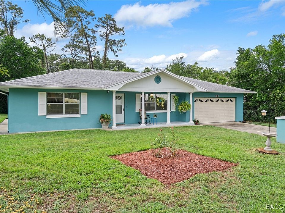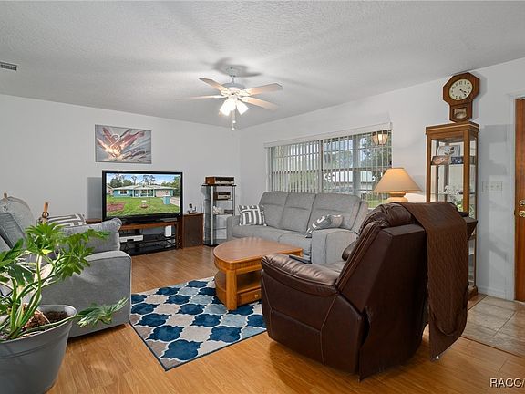 Great price! NO HOA! Furniture is mostly gone so it's very move-in ready. Welcome to this pristine 1,281 sf concrete block & stucco (CBS) gem—CBS is widely regarded as the gold standard in Florida construction for its superior durability, energy efficiency, and low maintenance. Thick walls and stucco’s reflective qualities help your home stay cooler, reducing A/C strain and utility bills—a smart eco and cost saving design Practical upgrades done, plus room for storage, workshop, or overflow solution. Roof new in 2013. Spacious 2 car garage with additional storage “cubby” space at rear. Landscaped with lush yet restrained plantings—no overcrowding, just refined curb appeal. Two sided fencing open at back—so you can walk the dog in the shade of trees and spot the occasional deer. Less than 3 miles to grocery stores, town, fishing, golf, pickleball and beyond –to all the attractions of Citrus County, 90 min to either Tampa or Orlando airports. Enjoy Florida living! Call to see it today!