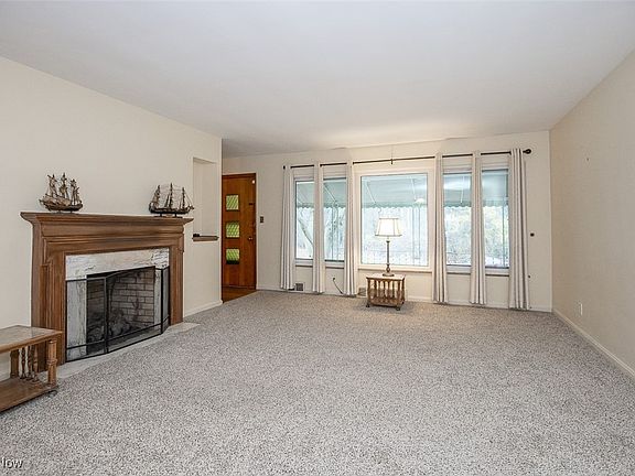 WELCOME to this well maintained BRICK 2 Bedroom, 1 Full and 2 Half Bath RANCH on Edgebrook Blvd with VALUBLE UPDATES ! The home features a spacious Living Room with Gas operated Fireplace, Brand new Carpeting and a newer Large Front Picture Window overlooking a beautiful wooded area. Recent UPDATES include, NEW ROOF and Chimney- 2025, Driveway- 2020, Electrical Panel- 2024 , 2 NEW sump pump -2024, Newer Windows throughout. A second Large Picture Window in the back brings in natural light and overlooks the Fully Fenced backyard. Enjoy outdoor living with covered Front Porch and a spacious covered back Patio on nearly a quarter acre lot. The home includes and Eat in Kitchen and a separate Dining area off of Kitchen, perfect for comfortable daily living. The property has been professionally waterproofed (2023) with French drain installed (transferable warranty), 2 sump pumps. Original Hardwood Floors protected under Carpeting in Bedrooms and Living Room. Living Room and Bedrooms Has been freshly painted. A FULL Basement provides excellent additional space with a Bar and Recreational Room, Laundry Room with washer and dryer staying, also there is a shower. 2 Car Attached Garage with Door Opener. A solid Move in Ready home with Valuable updates. Close to Schools including college, Restaurants, Shopping and I 480. Schedule your private showing. Ez to show.