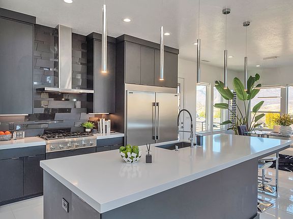 **Open 12/13 Saturday 1-3**Experience breathtaking Mountain Views, stunning modern design and lots of natural light. 10ft ceilings, upgraded 8 ft interior doors. Chef's Dream Kitchen: Two sets of double ovens (that's four total!), an oversized 12' x 4 1/2' island with countertop seating, and top-of-the-line finishes. Luxurious Primary Suite: Coved ceiling, separate soaking tub, large shower with dual fixtures and steam/sauna feature, and an incredible walk-in closet (7' w x 15' L x 10' h). Comfort & Style Throughout: Heated basement floors, cozy family room with kitchenette/wet bar, and elegant modern finishes. Tons of storage throughout. Garage & Lot: Four-car heated garage with 10' doors and 12' ceiling height, plus RV parking. Set on a .64-acre lot with open space to the east and front for added privacy. Many nearby biking/hiking trails. Only 15 minutes to Snowbasin Resort and Pineview Reservoir - perfect for year-round recreation! Don't miss this rare find combining modern luxury, thoughtful design, and unbeatable mountain living!