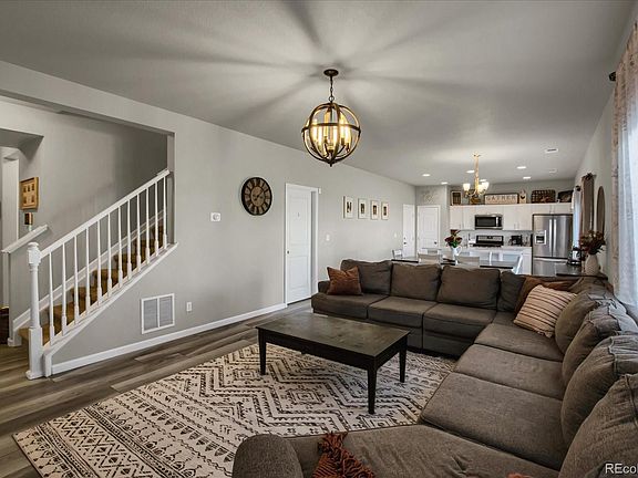 Welcome home to this beautiful and tastefully appointed home in ever-popular Wyndham Hill. The open floor plan allows convenience for everyday casual living as well as boastful entertaining. Beautiful white cabinets, quartz countertops, a tile backsplash and stainless steel appliances create a stylish, tasteful and functional kitchen with a massive island at the heat of it all. Modern lighting can be found throughout this like-new home. One bedroom and a full bathroom are conveniently located downstairs. The primary bedroom--including an en suite bathroom, 2 additional bedrooms an another full bath and the laundry room are all located upstairs. Completing the upstairs is the loft which can flex as an alternate living area, a gym, an office or just an area to relax. Built in shelving lines one wall of the loft. Curb appeal galore--the charming yard is fully fenced and comes with sprinklers in front and back. New roof in 2024. Convenient location, just minutes from I-25 for a quick commute to Denver, Boulder or Fort Collins. Just 5 minutes from the flavorful downtown of Erie. The neighborhood has a community pool, clubhouse, parks, playgrounds and trails. You are going to love living here!