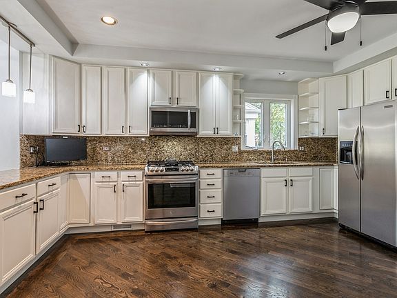 Totally updated, exceptional home in desirable location and School Disc. Refinished hardwood floors, freshly painted high ceilings, and stained-glass windows. The main floor features a large living room and dining room with a spacious kitchen that has 42" cabinets, granite counter tops, brand name stainless steel appliances, which all open to a family room/breakfast area with large windows. Full size, updated bathroom, and two bedrooms with closet organizers. On the second floor is the private primary bedroom with custom build-ins, a walk-in closet, and additional closets with organizers. The primary bath has a double sink vanity, separate shower, and jet tub. Finished basement with a recreational room, office, storage and laundry room with front loading washer & dryer and flood control system and brand new heating system. Nicely landscaped lot with front porch, extra deep back yard, a large, brand-new deck and brand-new 2-car garage. Sought-after neighborhood, close to Metra train station, village hall, expressway and entertainment. Parkview and Niles west schools. Must see!