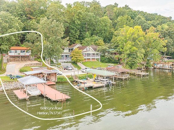 WATERFRONT living on the Tennessee River! This charming two-bedroom lake cottage offers sweeping panoramic views of Chickamauga Lake, along with a spacious TVA permitted private dock (1,048 sq ft) and a covered boat slip (330 sq ft) featuring a working two-motor lift and jet ski lift. Enjoy stunning sunsets and peaceful lake views from the fully enclosed, climate-controlled sunroom—the perfect spot to relax any time of day. Inside, the open-concept layout with hardwood floors is filled with natural light, thanks to large picture windows that frame the water from most rooms. The home includes a carport with room for multiple vehicles, plus two extra parking spaces located near the dock. Whether you're looking for a permanent lakeside residence or a serene weekend getaway, this is an incredible opportunity to enjoy year-round lake life. Located on Lynn Rd, a private road with a rich history and small-community charm within Sunset Landing, originally built for Union workers. Property will be sold As-Is. Note: HOA requires leases to be minimum 6 months, and short-term rentals are not permitted. Buyer to verify any and all information deemed important.