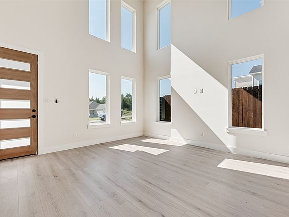 Modern fixturesFloor-to-ceiling windowsAmple windowsStone countertopsOversized utility roomOpen-concept layoutExpansive fenced backyard