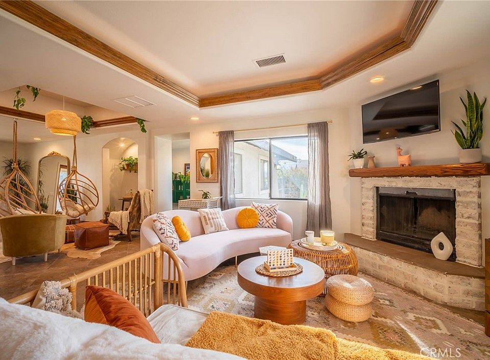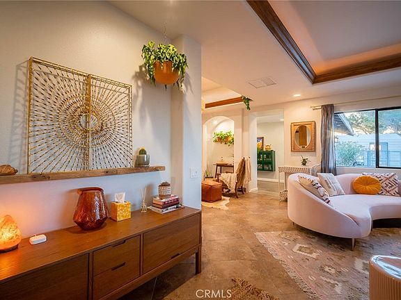 Rediscover serene desert living in this elegant, fully remodeled, Tuscan home nestled within Joshua Tree's renowned "upper friendly hills" neighborhood. Located at 60467 Natoma Trail, surrounded by artists and trendy boutique restaurants, this bright, custom home offers an idyllic retreat away from city life. Just 5 minutes from the Joshua Tree National Park entry, this home features tile floors throughout that add sophistication and charm. The spacious outdoor area includes a fenced privacy yard and unparalleled views of the mountains and exceptional Joshua Trees. There are also two backyard storage containers, one creatively turned into a game room, and the other can be used as extra storage or even renovated. Enjoy awe-inspiring sunrises, breathtaking sunsets, and stargazing from the comfort of your backyard. The hot tub featured in the backyard is not included in the sale but can be purchased separately. Option for a roof viewing deck, staircase just needs to be re-attached to the existing deck. Feel the charm of this exclusive desert community and fall in love with the serene lifestyle it offers!