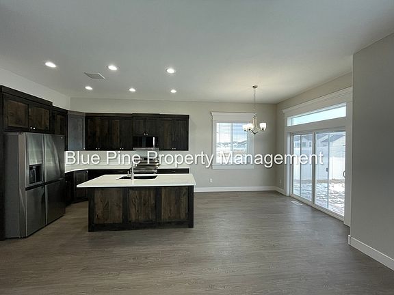 BRAND NEW 2024! Beautiful 3 bedroom 2 bathroom home for rent features: 3 car garage, open layout in the kitchen dining and living room area, kitchen island, large laundry room, master suite with walk-in closet and bathroom with dual sinks in the vanity, shower and freestanding tub. An unfinished basement offers lots of extra storage space. This home also has an automatic sprinkler system, central AC and fully fenced back yard!