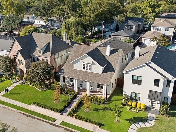 There are many exceptional homes in Lower Greenville, but few capture the charm and craftsmanship of 6047 Goodwin Avenue. This stunning 5-bedroom, 4-bath modern farmhouse blends timeless architectural details with warm, contemporary design, creating a home that’s as welcoming as it is refined. Built in 2023 and perfectly positioned in a highly desirable neighborhood, it offers a rare combination of character, function, and high-end comfort. Step onto the inviting front porch, surrounded by lush landscaping, and enter a home where elegant archways frame the openings to the front living area and office. Inside, white oak hardwood floors, neutral tones, and thoughtful finishes create a seamless flow. The main level features two spacious living areas, each centered around a stone fireplace, including a double-sided fireplace shared between the front living room and formal dining room. The chef’s kitchen is the true heart of the home, boasting a giant center island, stainless steel appliances, a breakfast nook, and a walk-in pantry large enough for a second refrigerator or freezer. Additional amenities include a mudroom and laundry room, offering smart, functional spaces for everyday living. Downstairs, a private guest suite and a full bath provides ideal flexibility. Upstairs, the primary suite is a serene retreat featuring a spa-like ensuite bathroom with dual vanities, a walk-in shower, and a spacious walk-in closet. A bonus room off the primary provides the perfect space for a nursery, home gym, or sitting area. Three additional bedrooms, one with an ensuite bath, plus another full bathroom complete the upper level. Conveniently located close to Greenville Avenue’s acclaimed restaurants, coffee shops, and the historic Granada Theater, and within walking distance to Tietze Park with its playground, picnic areas, sporting facilities, and pool, this home offers the ideal blend of comfort, style, and vibrant neighborhood energy.