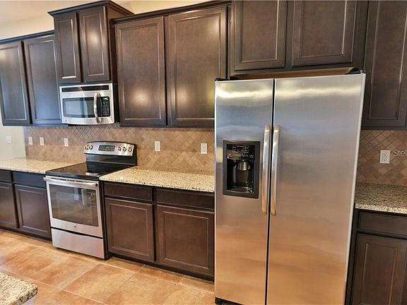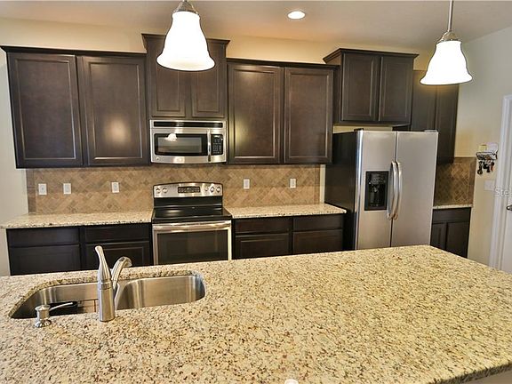 You must see this home! This 3 bedroom, 2 Bath home is like brand new! The open floor plan has a gorgeous eat-in kitchen with a huge island, granite countertops, stainless appliances and beautiful all wood cabinets. The kitchen opens to the spacious living room and dining room. The laundry room off the kitchen leads to the 2 car garage with built in workbench and shelving for lots of storage space. The master bedroom is huge and has a big walk-in closet, and brand new waterproof vinyl wood-look planking. The Master Bath has dual sinks, private water closet, beautifully tiled shower and a separate soaking tub. The other two bedrooms are at the other end of the home, so everyone has their privacy! The outdoor space is wonderful, with a large screened lanai just off the living area, a paver patio outside that, and a firepit! Plus, the back yard is completely fenced. Come see it before it's gone!