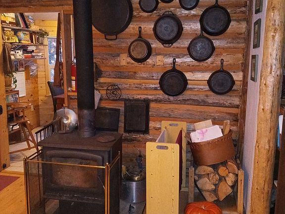 5 Acres-2 bedroom home, LARGE SHOP & creek all on private treed setting . Off grid property fully setup with solar & propane generator. Landline phone available. Wood Heat for cozy warmth in winter months. Plenty of room to work in the shop plus room left over for RV, boat, snowmobiles & all the toys. Full concrete floor, plus lean-to on one side for more storage! Additional outside building for man-cave or she shed! 4 Wheel-Drive for winter time access but close to Fergie! By Appointment only!