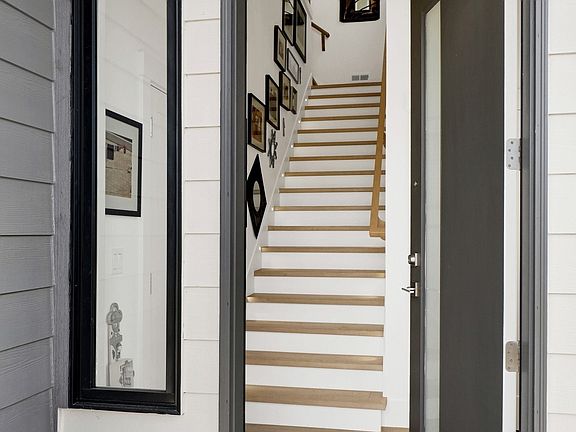 Contemporary home in The Meadows Development. 3 Bedrooms 2 bathrooms with a large office & Laundry. The kitchen has modern soft close cabinets, Stainless steel appliances quartz counters, a Tiled backsplash, and a large breakfast bar. The primary suite has a beautiful walk-in tiled shower with a bench and rain shower head. walk-in custom closet with built-in cabinets. Speakers in the ceilings, A/C, electrostatic filter for your air, front deck to enjoy your view. 2 entrances to this home, you can park on Brian ct in your garage and walk up the stairs to your home or park on Rossie ln and walk into your home. Home is a zero-lot line. Walking distance to Elementary and Middle School. Walking trails in the Meadows and a tree-lined boulevard.