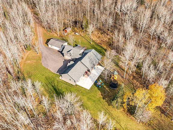 Welcome to your private oasis just outside Duluth city limits. This expansive 6 bedroom 5 bath house is located on 20 acres bordered by peaceful French River frontage. An addition was placed in 2023 adding 655 sq ft including 3 new bedrooms and 2 spa-perfect luxurious bathrooms. Upstairs bonus room has brand new carpet 2025, a built-in wet bar, and the expansive Trex deck new in 2023 gives unlimited entertaining options for both indoors and outdoors. New appliances added in 2023 range, microwave, and fridge. The house also has underground fiber optic internet as well as Star Link satellite equipment installed and ready for optional use. New boiler in 2020, new water softener 2024, new ac & furnace 2024, new tankless water heater 2021, new concrete patio 2024, new landscaping 2025, new Andresen doors and patio doors 2025. Main bedroom on one side of house next to bedroom/office with the remaining bedrooms on the other side of the house. Groomed trails run throughout the property to enjoy snowmobiling and ATV rides.