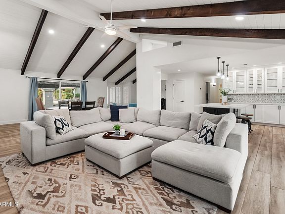 This completely reimagined 4 bed, 2 bath single-level home blends modern design, premium upgrades, and a rare oversized lot in the coveted 85254 Kierland area. With over $300K in renovations, every detail has been thoughtfully executed for today's lifestyle. The light-filled split floor plan showcases vaulted open living spaces, new flooring, custom doors & sliders, raised ceilings, and a seamless indoor-outdoor flow. Walls were removed to create a true open-concept design, anchored by a chef's kitchen with sleek finishes and a spacious primary suite featuring a fully remodeled bath. Extensive upgrades include two new AC units, updated electrical, solar panels, newer roof, remodeled pool & new pump, and a complete backyard transformation with lush landscaping.