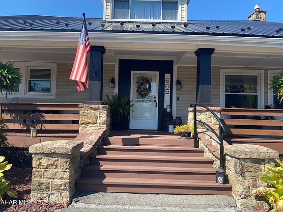 Welcome to this charming home situated on a spacious 0.7 acre corner lot in the borough of Duncansville. The property offers a large fenced-in yard, circle driveway, and plenty of parking - perfect for entertaining family and friends. Step inside to find an inviting eat-in kitchen with brand new appliances and a convenient laundry area just off the kitchen. This home includes too many updates to list, but some substantial updates include a new metal roof, water tank, water softener, and paint throughout. Enjoy outdoor living with a large 48' covered front porch plus two additional decks through the sliding glass doors leading to the backyard. The main level features two generous bedrooms, a den or bonus room and a full bath. While the upper level boasts a third bedroom, a bonus room complete with beautiful exposed wooden beams and an additional bathroom that is a must see! A 1-car garage with an extra stall for storage, workshop or hobbies completes this property. best of all isn't not in a flood zone - giving you peace of mind. This home has space, charm and functionality all wrapped into one - don't miss the opportunity to make it yours!