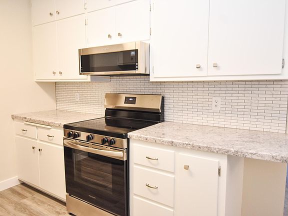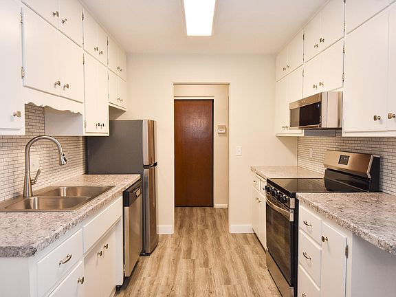 Just steps from downtown parks, this updated condo combines comfort, convenience, and low-maintenance living. Inside, you’ll find two bedrooms and one full bath, plus access to shared laundry and storage. The spacious kitchen features ample cabinetry, fresh paint, new counters, and a stylish backsplash. The large bathroom offers plenty of storage with newly painted cabinets and tile. Recent upgrades include laminate plank flooring, modern lighting, charming shiplap accents, and more—making this condo move-in ready and full of character!