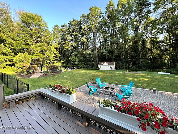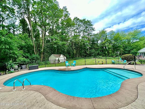 This amazing 4 bedroom 2.5 bath custom built colonial has an open floor plan, vaulted ceilings, dual gas fireplace, large primary Bedroom on the first level with sliding doors leading to the private deck, beautiful windows for loads of natural sunlight and a lovely 3 season sunroom overlooking the private backyard and inground pool. Fantastic finished basement with sauna and additional unfinished space for storage and woodshop area. New roof, new heating and AC in 2019 and new wrought iron fence for the doggies in 2021. This home even offers a basket court for loads of family fun and the perfect house for entertaining friends and family.