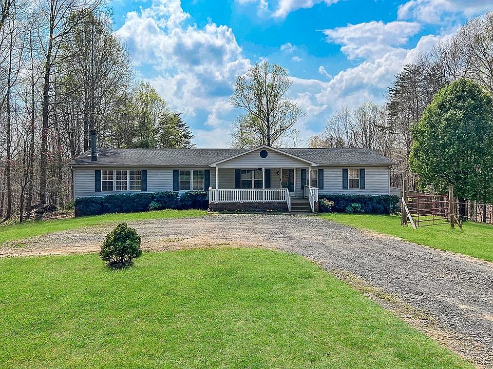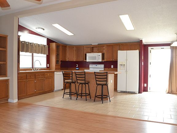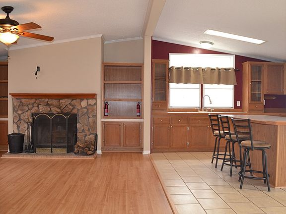 Spacious doublewide with covered front porch, large living room, dining room, great room concept family room/kitchen with vaulted ceiling and fireplace. Kitchen has island and lots of counter space & storage. Laudry room/mud room offers storage and half bath. Sliding glass doors to wooden deck. Laminate flooring throughout property. The master bedroom features a walk in closet, private bath with soaking tub and step in shower. Plenty of room on the 6 acres for animals, about 2 acres is fenced, larger barn building has previously been a 3 stall stable. Bring your goats and chickens, they will love it!!! Roof is 5 years old. Pre-listing home inspection is available at the property and by email to buyers agent.
