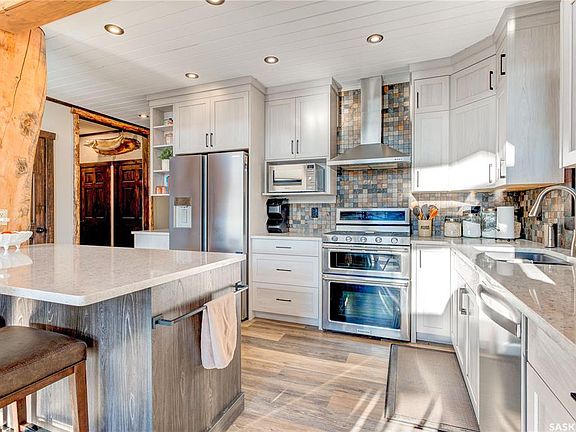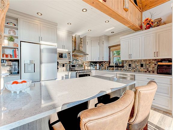 This newly renovated year round cabin is nestled in the back of a peaceful, quiet cul-de-sac. The stamped concrete 28'x12' deck comes complete with a full outdoor kitchen (fridge, sink, natural gas BBQ), 6 man hot tub with a new heater & pump, and the thoroughly enjoyable 16'x12' screened in outdoor room, with lights, electrical, and plenty of room for entertaining and card playing. The front deck is a massive 12'x34'. Inside the home there is the master bedroom on the 2nd floor, overlooking the living room/kitchen area, with its own 14'x14 living room and 8'x14' ensuite. The kitchen and bathrooms have been completely renovated with new cabinets, quartz countertops, new dishwasher, and new fridge. There is a bedroom on the main floor, a den/bedroom, and a woodburning fireplace. Both floors have in-floor heat with a new boiler system. There is a large 24'x24' heated garage, with rubberized parking pad and epoxy sealed garage floor, and a one bedroom suite, complete with full bathroom, over the top of the back of the garage. There is a boat slip that can be purchased from the sellers. To build everything this home is equipped with would easily be well over $1 million!