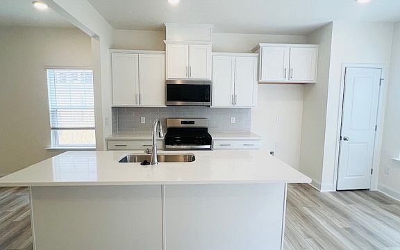 This stunning, BRAND-NEW home features a spacious and thoughtful layout, 5 BEDROOMS+LOFT+3.5 BATHROOMS. A first-floor primary bedroom for ultimate convenience, plus four additional bedrooms and a versatile loft upstairs. You'll love the curb appeal with its charming stone front and the interior is just as impressive. The family room opens beautifully to the kitchen, creating a seamless living space. The upscale kitchen includes gas cooking, quartz countertops, upgraded white cabinets, a stylish tile backsplash, and a sleek stainless steel apron-front sink. Luxury vinyl flooring flows throughout the entire house, complemented by beautiful wooden stairs. Upstairs has 4 bedrooms, including a second large bedroom with its own