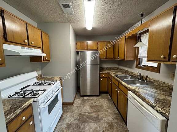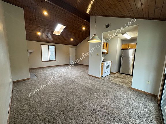 2 bedroom 2 bath unit at Mountain Valley Condos. Open living and dining room with high ceilings and a fireplace. No Chimney so for decor only) Screened in back porch to take your morning coffee. Cozy kitchen with refrigerator, dishwasher, garbage disposal, and gas stove. Full bathroom with large linen closet for storage. Bedroom will fit a king size bed with a dresser. Walk in closet has washer/dryer hookups. This unit does have some outside lockable storage space. 2 Pets are welcome with a 2 pet limit. All pets require a $200 pet fee per animal. Utilities needed are, Mnt Home Water, Entergy, and Black Hills (Gas)