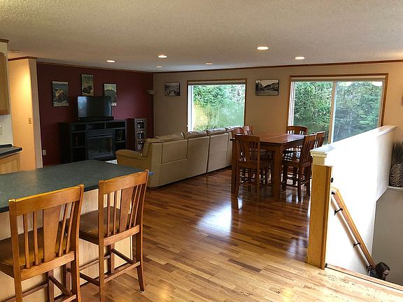 Beautiful Alaskan home. Upstairs is an open kitchen, dining and family room that gives you a view of Prince William Sound and the Heney Mountain range, two bedrooms and two full bathrooms. Downstairs has a large bedroom, entry way and family room. The best part about this home is you have the option to rent out the studio apartment. The apartment has a separate entrance, family room, kitchen, bedroom, full bathroom, with laundry. This rental can help cover the mortgage which is an added bonus. The property is within walking distance to skiing, nature trails, and downtown Cordova.