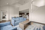 Stainless steel appliancesElegant hardwood flooringGranite countertopsTall two-story ceilingsWalk-in closetEnsuite bathSpacious island with seating