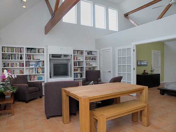 This is an Old Town Charmer with stained fir high ceiling beams, stucco exterior, metal roof, fenced front yard.Plantation shutters.Terra cotta tiles.Built-in bookcases in family room.One car garage and one car carport.Master bath with separate shower.Pedastal sink. Transom windows.Recessed lighting.Sony surround sound.Kenmore dishwasher/clothes washer/dryer/refrigerator convey.Electric stove.Elfa shelving and storage units in bedroom, closet and garage. Upstairs bedroom. 0.19 acre.