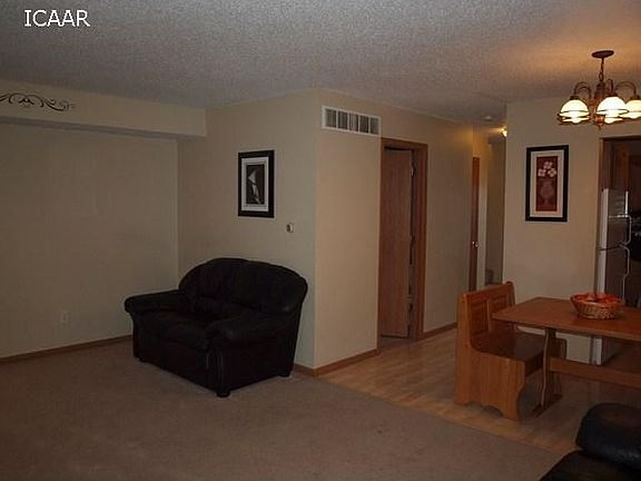 2 story affordable end unit townhome with green space & 1 car detached garage very close by. Comfortable 2 bdr/1.5 ba with nice sized rooms & closets. Inviting oak kitchen cabinets & new counters, plus grilling space on the oversized shaded deck. Enjoy maintenence free living w/ association dues of just $50/mo., leaving plenty of time to walk & bike the nearby trails. Just 15 min to IC or Muscatine, this home features a basement crawl space for xtra storage and includes a newer stack W/D + all appliances