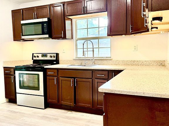 Fresh paintCovered patioFenced backyardStone countertopsFunctional single-story layoutBright eat-in kitchen