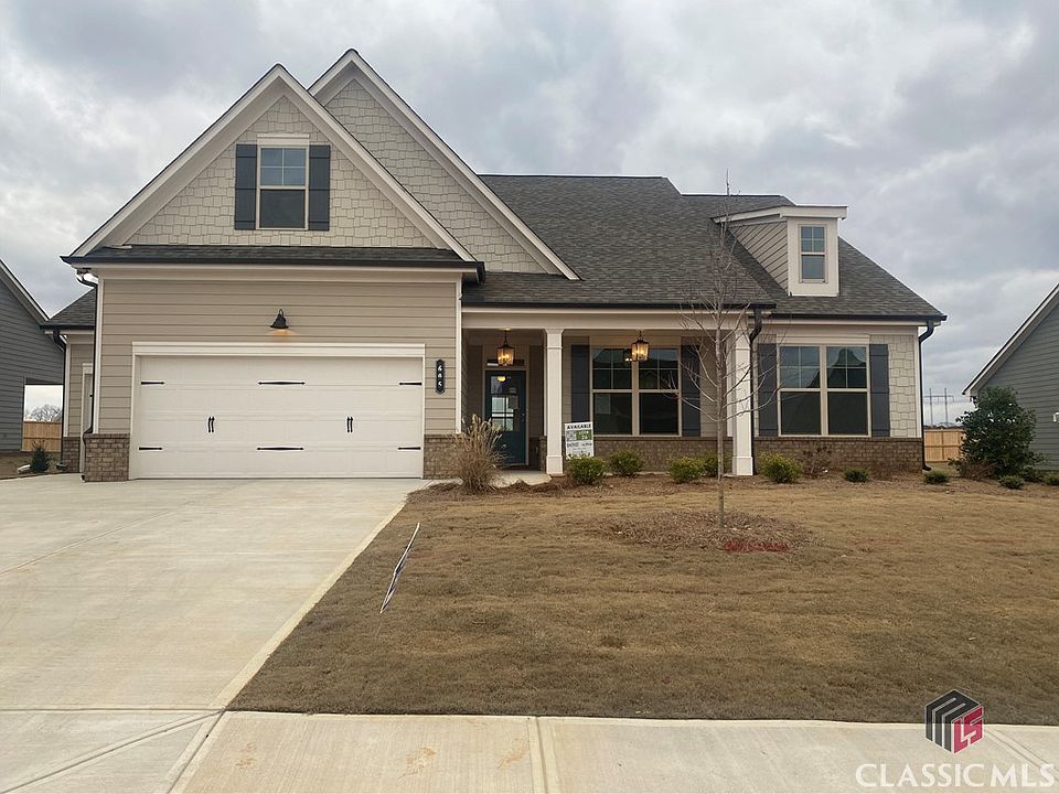 3 BR / 2 1/2 BA, Carriage Garage perfect for storage, Covered patio & front porch, Family rm w/ built in base cabinets flanking gas fireplace accented w/ shiplap to ceiling, large built in drop zone in mud rm off garage, white kitchen cabinets w/ granite countertops, huge island w/ farm sink, primary suite w/ white cabinets, 12”x24” tiled shower walls , large 6 foot tub, & 12”x 24” tiled bathroom floors in both full bathrooms, wide plank laminate flooring in foyer, kitchen, breakfast rm, family rm, powder rm, mud rm and hallway to primary suite. Privacy fence has already been installed along the rear property line.   Happily Built By Three Rivers Homes. Amenity package is under way and will be complete spring/summer 2024. Clubhouse, pool, pickleball, social gathering space.Photos shown are a rendition. Other community features include side walks through out, separate green space, & lawn care/mowing on all 4 sides.  The art of living well starts here.