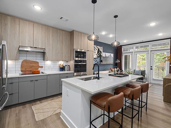 - Exterior features: *In Select Units, Ceramic Tile Backsplash, Custom Matte Black & Quartz Finishes, Designer Kitchens, EV Charging Stations, Garage-door Secure Parking, Hotel-Style Vanity Mirrors, Keyless Building & Unit Entry, Luxury Wood-style Flooring, NEST Thermostats, Oversized Islands*, Soft-Close Custom Cabinetry, Stainless-steel Appliances, TV Lounge, View Type: Skyline Views, Wine Fridges*, Yoga Room