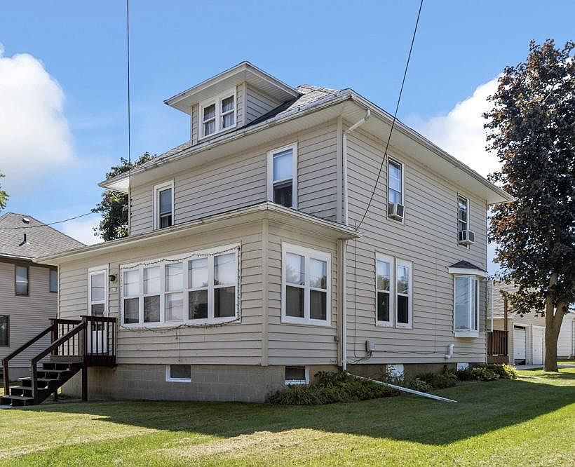 Welcome home! Character is portrayed in this 4 bedroom home, nestled in a quiet neighborhood. Kitchen features laminate flooring, and appliances. Dining room offers plenty of natural light plus built-in china cabinet. Spacious living room leads to additional room for office, den or storage. Half bath on main floor. Upper features 4 bedrooms plus a full bath. Original timeless woodwork. Walk-up attic. Full basement for added storage. 2.5 car garage. Newer concrete driveway, siding, garage door. Relax on the back porch overlooking the peaceful setting. Great location. Warm sense of community with walking distance to parks, beautiful golf course and a variety of bars/restaurants. Home Warranty included!