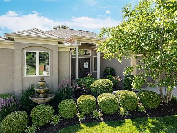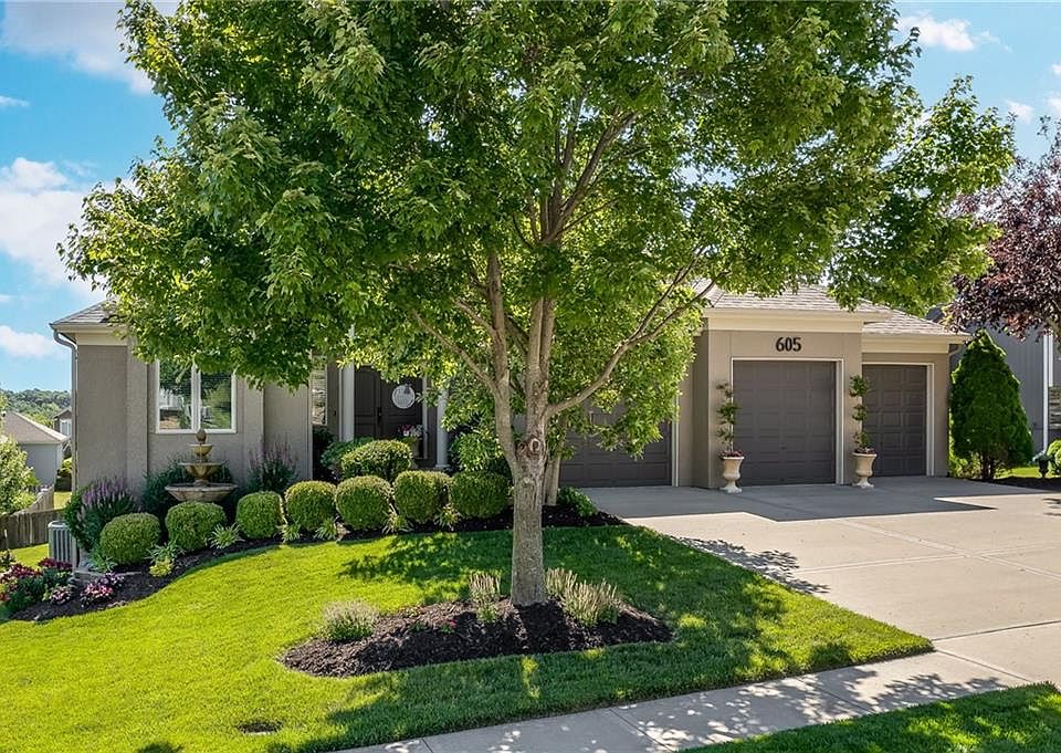 FABULOUS reverse 1.5 story in Smithville boasts 4 bedrooms and 3 FULL baths and sits on a quiet cul-de-sac. This one-owner home was the model and has all the extras–crown molding and architectural details in every room, 12-foot ceilings, backlighting in the living room, wood blinds in every room, 3 car garage, nest cameras, and the LANDSCAPING is second to none! The large open entry invites you to the large open living space. The family room with gorgeous floor-to-ceiling windows flows nicely into the gourmet eat-in kitchen with all stainless appliances, custom cabinets, granite countertops, and tiled floors. Easy access to the balcony with trex flooring right off the kitchen. Another bedroom and the convenient laundry sit just down the hall. On the opposite side of the main floor sits the luxurious master suite. Unwind in the spacious bed and bath including a whirlpool tub, walk-in closet, double vanity, and shower. The walk-out basement and second living space include 2 large bedrooms and another full bath. Wired with surround sound - this room is ready for family entertainment. Enjoy the beautiful covered patio down below with breathtaking views of the outdoor space. With a pool 2 blocks away, trails, a fishing pond and so much more!