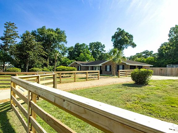 Charming Brick Ranch on .7 Acres! four generously sized bedrooms, three full bathrooms, fresh paint throughout, new kitchen counter tops/sink, new ceiling fans throughout, 2 car attached garage that has been converted into an extra living area/playroom. The entire property is fenced, offering peace of mind for pet owners or children to play freely. For the little ones, a giant sand pit awaits! Beat that Florida heat in your Intex above-ground pool! The covered back patio has tons of room to set up your outdoor dining or lounge seating! Providing the perfect blend of family living and exciting coastal adventures, significant recent improvements and ample outdoor space, it's truly a gem. Also, Location, location, location! 25 minutes to Pensacola Beach or 40 minutes to Orange Beach, Alabama!