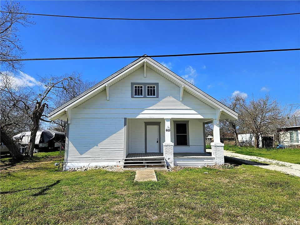 Charming frame home in the heart of Kosse, Texas located on 2 city lots. Brand new central heat and air system added in February of 2024, new roof will be installed prior to closing. This home features two large bedrooms with attached bathrooms, and an additional room that could be used as an office or a 3rd bedroom, raised ceilings throughout, living and dining space, nice sized kitchen, front and rear porches with fenced in area behind the home and plenty of room to add additional improvements.