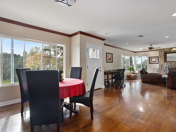 Private and secluded estate nestled behind a gated drive in the foothills of North Monrovia. Situated on an acre of land with ample useable flat space, this stucco and wood-sided traditional two-story home offers views from almost every angle. The Great Room includes a dining area and an oversized fireplace with raised flagstone hearth and surround, tons of dual paned windows, and a built-in entertainment center. The living room has a breakfast bar and opens to the gourmet kitchen featuring custom cabinetry, an XL Kitchen Aid fridge, DCS built-in range and warming oven, quartz countertops, stainless steel appliances, double sink, recessed lighting, ceiling fan, and views to the rear yard. There is a downstairs bedroom with a full bath, as well as a large bonus room with a built-in entertainment center perfect for a game room. Upstairs youll find two additional bedrooms, each with its own attached ¾ bathroom. Out back is an entertainers paradise with a covered patio, built-in pergola with kitchen, grill, fridge, and 2-sided wood burning fireplace, as well as a large pebble tech pool and spa with waterfall, and an outdoor shower, all surrounded by black wrought iron gates. Other amenities include hardwood flooring, recessed lighting and ceiling fans throughout, copper plumbing, some Berber carpeting, central air & heat, indoor and outdoor sound wiring, and amazing city light views. This property gives you the opportunity to experience nature, but still be close to everything!
