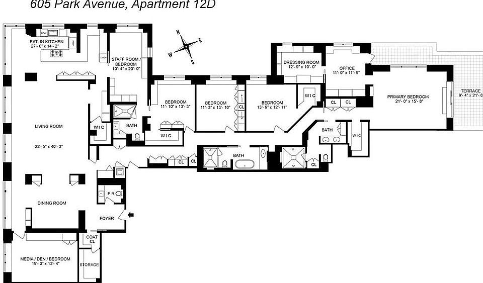 It truly is a home that seems to float above the bustling heart of Park Avenue, offering a rare blend of elegance, space, and luxury. 12B at 605 Park Avenue boasts 75" of Direct Park Avenue Frontage.