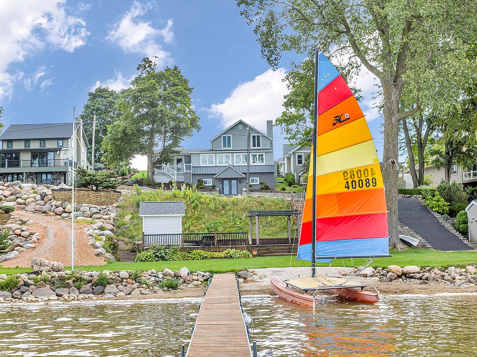 Start your day with coffee on the veranda overlooking the stunning vistas of Sand Lake, sail, swim, and sunbathe in the afternoon, and end the day with breathtaking, romantic sunsets. Nestled on a bluff, this 1930 classic lake retreat offers nearly 2800 sq.ft. of reimagined living space with beautiful gathering areas, ample lodging, and storage. Enjoy mature trees, cool outdoor spaces, and a private lakefront beach that comes equipped with deck lounging area, lakeside storage AND a sailboat. The 24x60 garage with a bonus room is perfect for a bunk, studio, theater, or game room. Discover the magic of Sand Lake and make 605 Pentecost Highway your home.