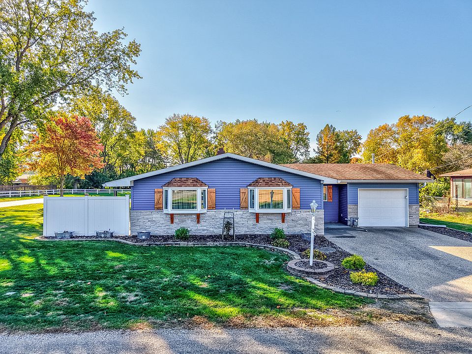 Pride of ownership shines throughout this beautifully maintained and recently updated ranch home, set on over half an acre and featuring a desirable 32' x 32' insulated and heated Morton Building. The curb appeal alone makes this property stand out, showcasing eye-catching design and meticulous upkeep. Step inside to a spacious, light-filled living room, setting a warm and welcoming tone. The appealing kitchen features custom cabinetry, Quartz countertops, a breakfast bar, tile flooring, and all stainless-steel appliances. The adjoining dining area, surrounded by large windows, provides the perfect space to enjoy meals and entertain. The primary suite includes a spacious private ensuite with a walk-in shower, while the second bedroom offers generous space and ample storage. A versatile office adds flexibility for work, reading, or relaxation, and a mudroom with custom cabinetry provides additional storage space. The main-level laundry provides everyday convenience, and the full bathroom features a tub/shower with dual shower heads. Key upgrades include a new furnace and A/C in 2024, newer windows and doors, updated electrical, newer plumbing and fixtures, Hickory moulding and trim, excellent insulation, and in-floor heating in the kitchen, dining room, and primary ensuite. The attached garage is both insulated and heated, and the insulated and heated Morton Building impresses with a large 8' x 18' garage door, a workbench, cabinetry, and attic storage. Outdoors, enjoy a spacious and decoratively fenced yard, concrete driveways, and a private patio ideal for relaxing or entertaining. This property seamlessly combines modern comfort, functionality, and impressive craftsmanship, making it a true must-see!