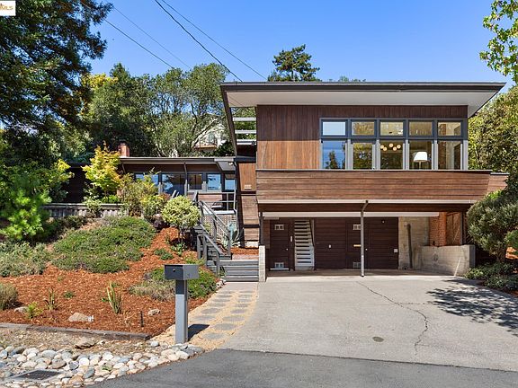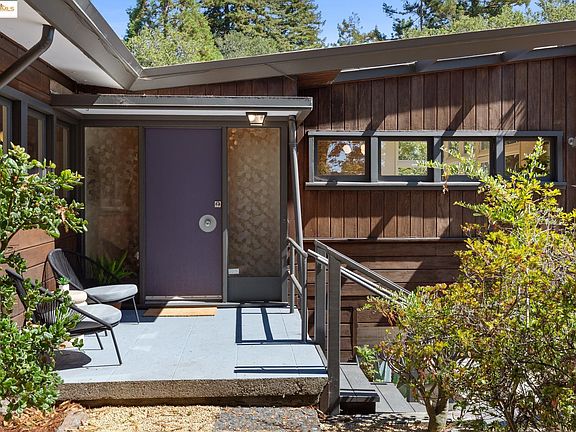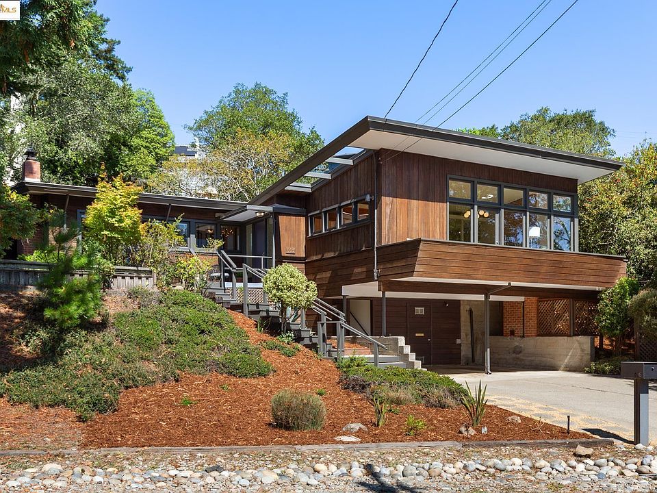 Tucked at the end of a cul-de-sac & backing to Tilden Park, 605 Plateau Dr. is a truly exceptional residence. This custom mid-century modern gem offers a rare blend of privacy, design, and connection to nature on 4 expansive lots totaling 0.79 acres.* With just 2 owners since its creation, this 3 bed, 2 bath home has been meticulously maintained, preserving its authentic architectural character. Inside, you'll find hallmark mid-century elements: clean lines, open spaces, natural finishes, & walls of windows that invite the outdoors in. Original hardwood floors grace the living and dining rooms, while reclaimed heart pine flooring—sourced from historic Treasure Island pylons—adds warmth to the den, hallway, & bedrooms. Two fireplaces bring cozy focal points to the living spaces. The kitchen balances beauty and functionality with wood cabinetry and a striking custom mosaic backsplash. A glass door opens onto the patio, perfect for enjoying seamless indoor-outdoor California living. With 1,919 square feet*, central air conditioning, high-end appliances, and a 2-car carport, the home also features a charming chicken coop, the perfect tree for a swing, and enough land to let your imagination run wild. Though it feels like a retreat, you're just minutes from the heart of Kensington.
